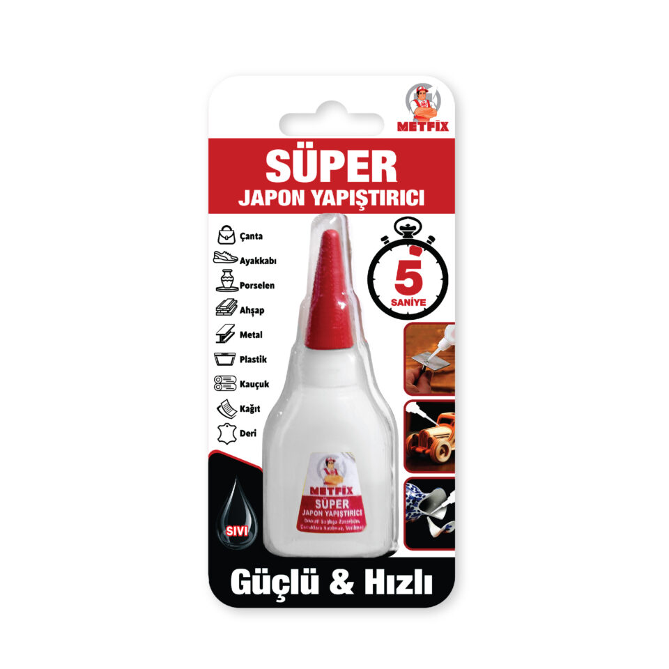 Metfix Süper Japon Yapıştırıcısı: Düşük viskoziteli çok hızlı bir siyanoakrilat yapıştırıcıdır. Özellikle çok hızlı kürleşme istenen uygulamalarda mükemmel sonuç verir.