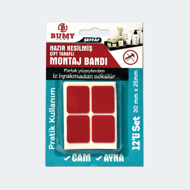 Hazır Kesilmiş Montaj Bandı 12’li Set – Şeffaf